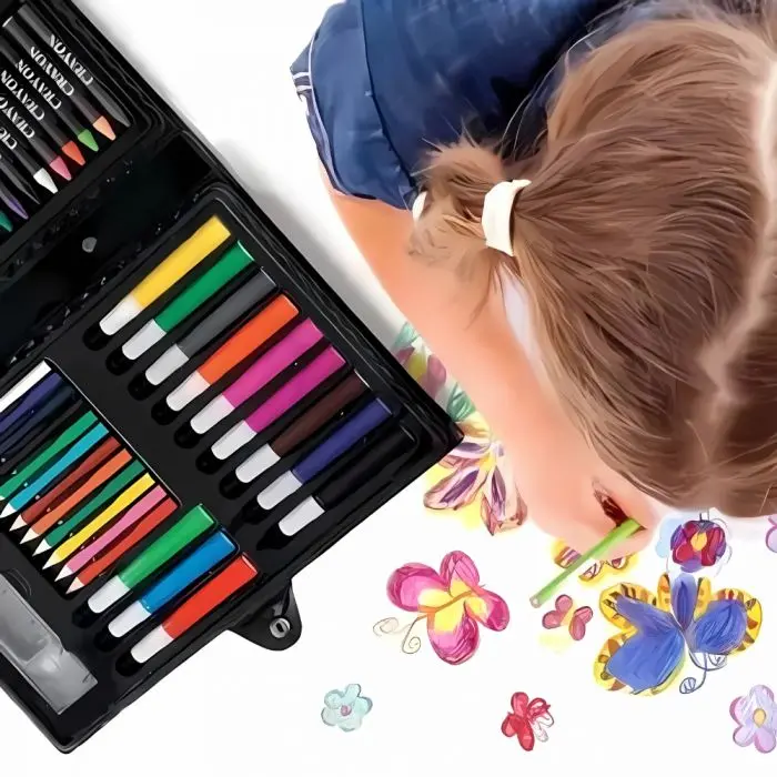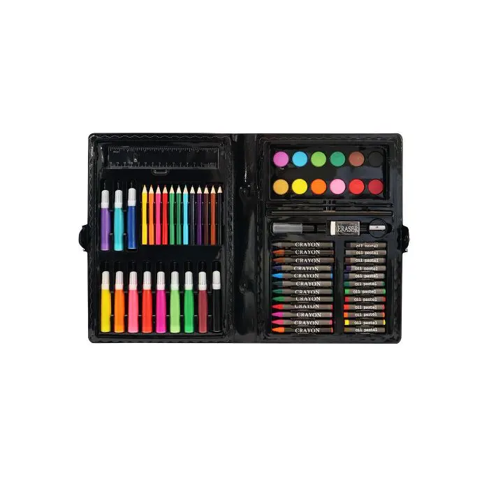 Set escolar 68 piezas que incluye:12 Fibrones de colores12 Lapices de colores12 Pasteles al oleo12 Crayones de colores12 Acuarelas1 Regla 15cm1 Pincel1 Lapiz Negro1 Pegamento1 Sacapuntas1 GomaMedida de la valija cerrada:21x30 cm